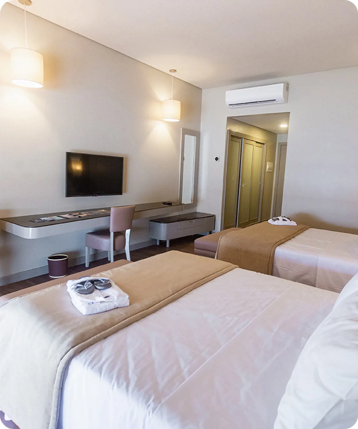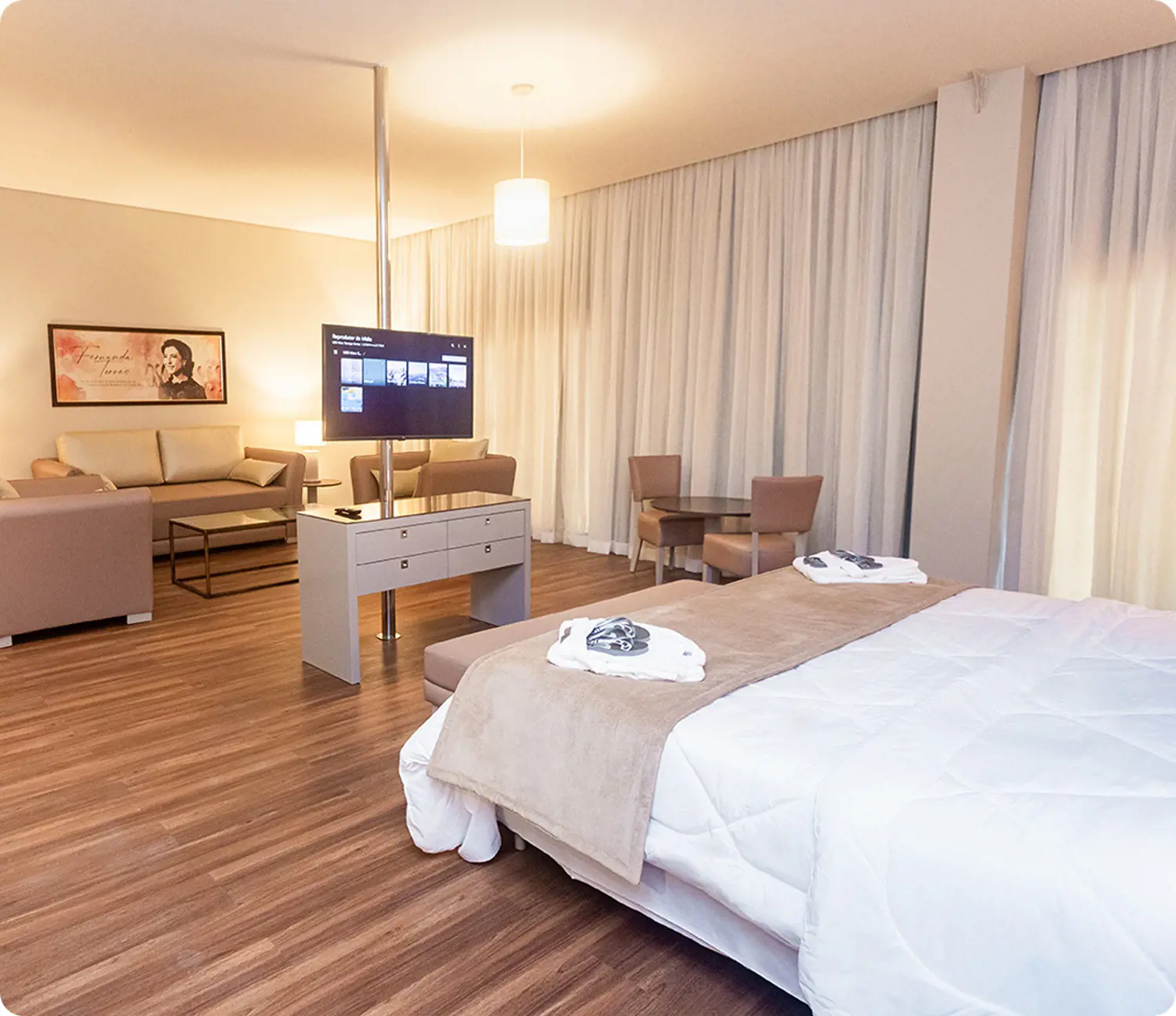 Mais requinte e exclusividade para quem busca uma experiência diferenciada. O Apartamento Premium oferece amenities superiores, enxoval especial e detalhes que elevam o padrão de conforto.