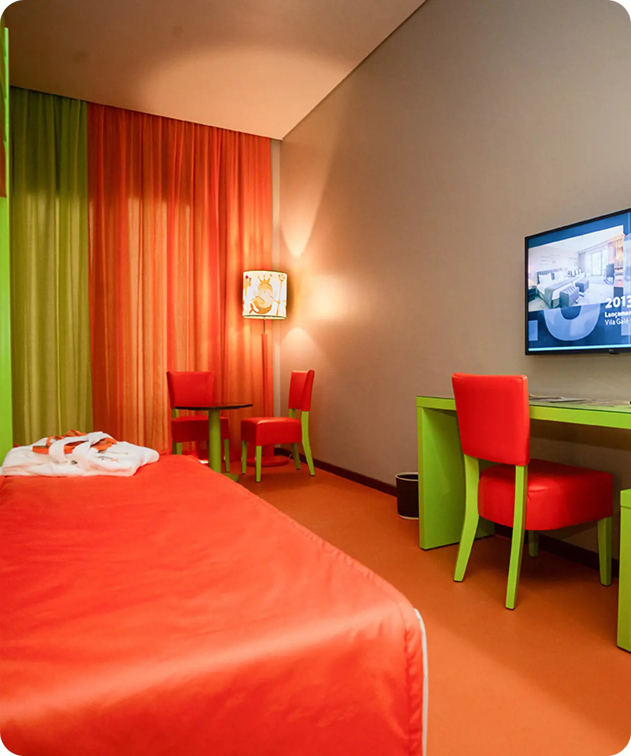 Inspirado no conceito NEP Kids, este quarto foi pensado especialmente para famílias que viajam com crianças. O ambiente lúdico e colorido torna a estadia dos pequenos uma verdadeira aventura.