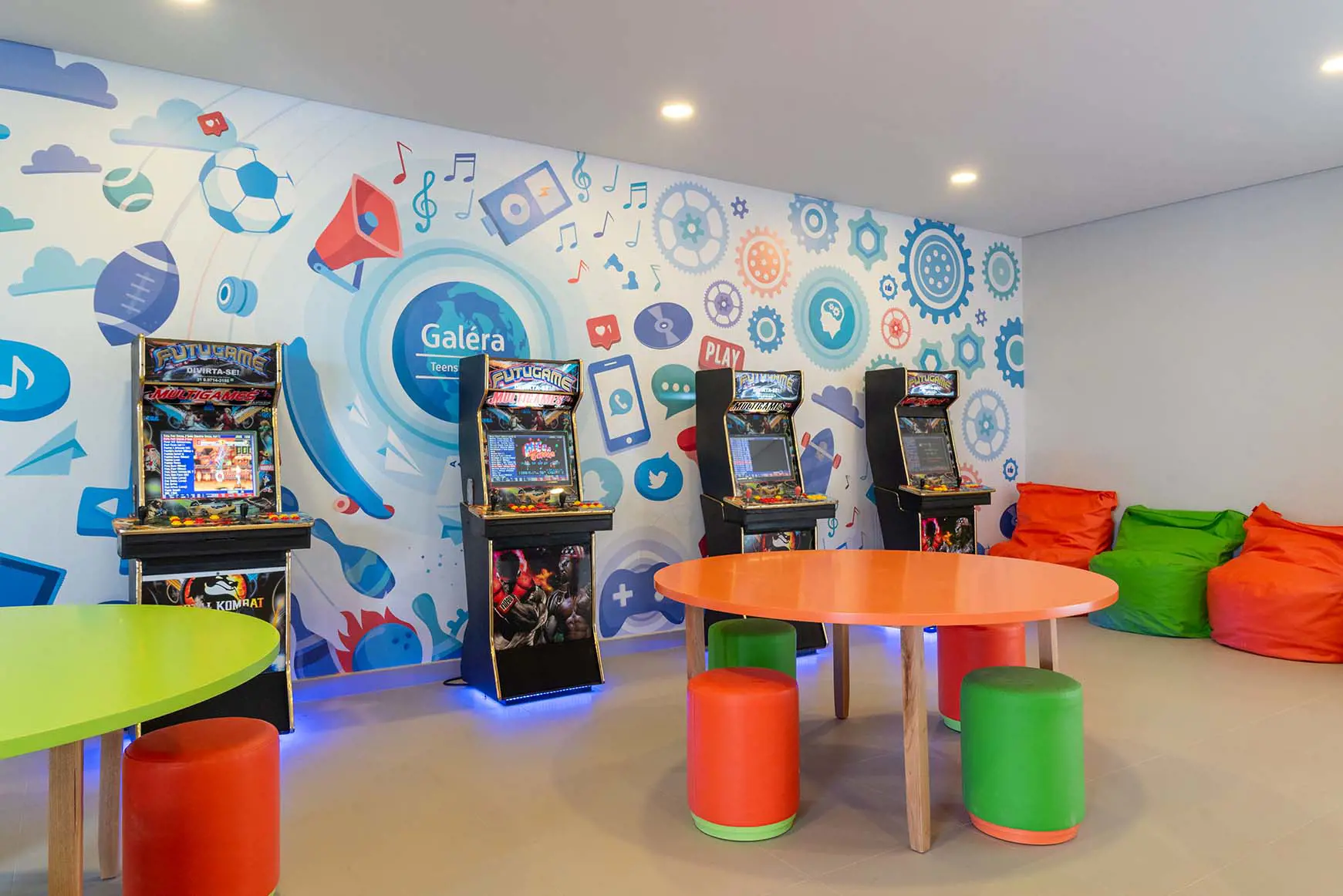 Brinquedoteca: Ambiente coberto com jogos, brinquedos e atividades recreativas.