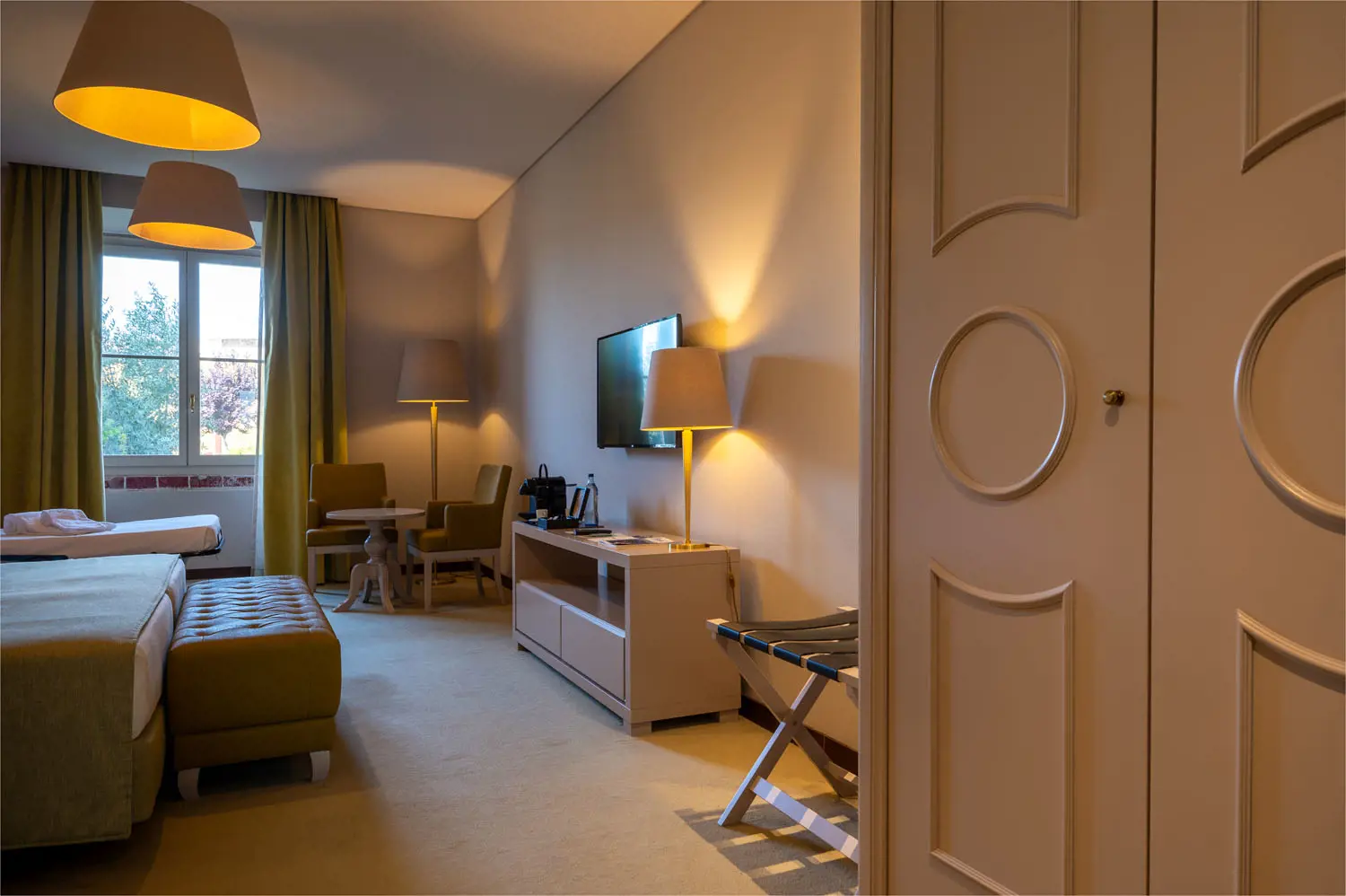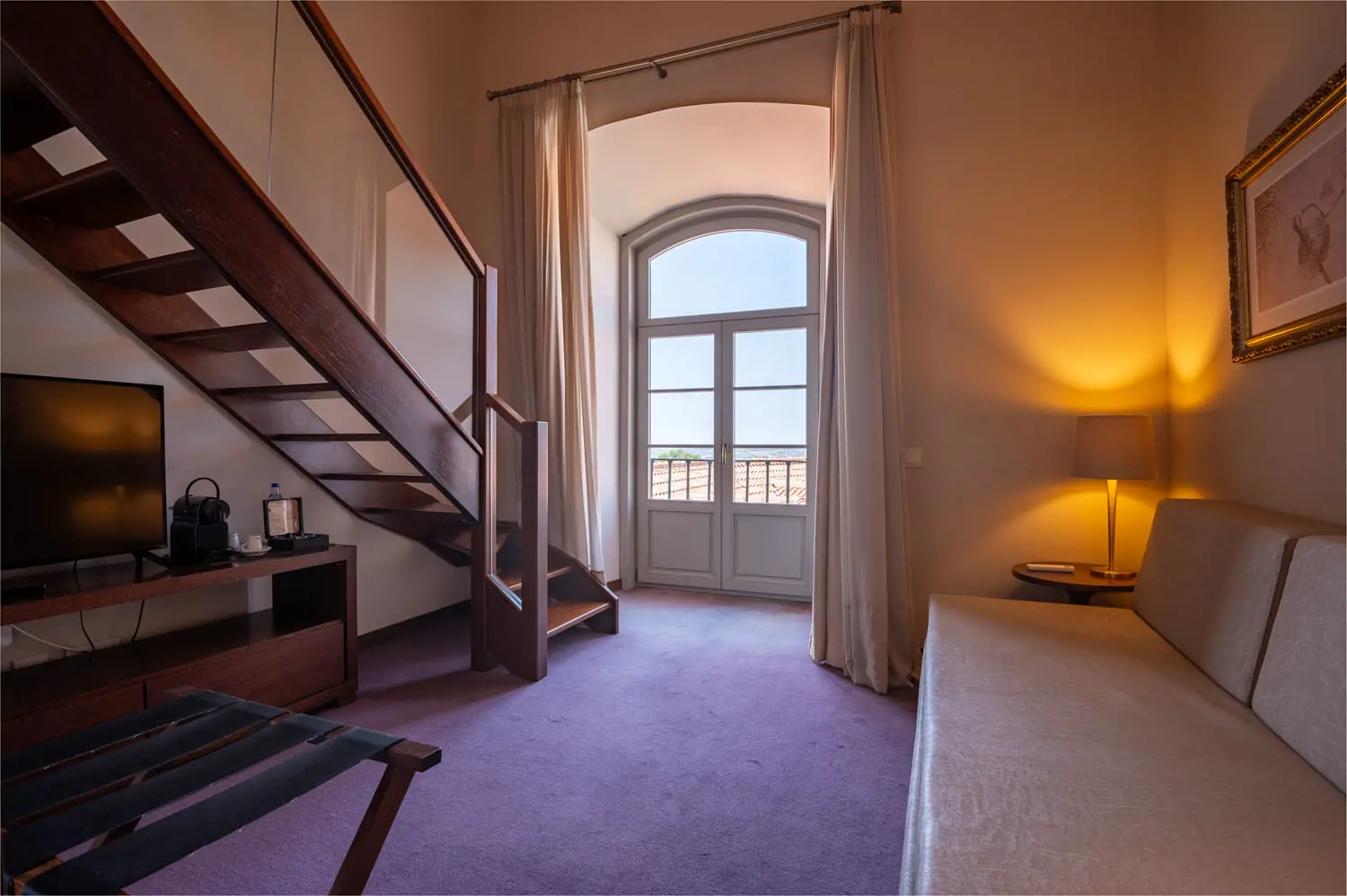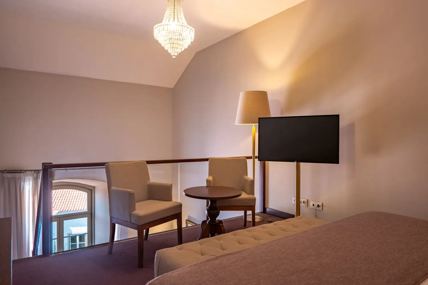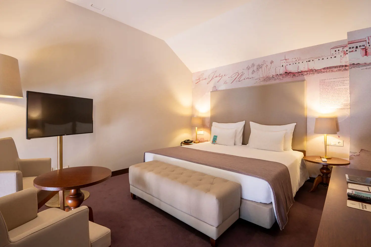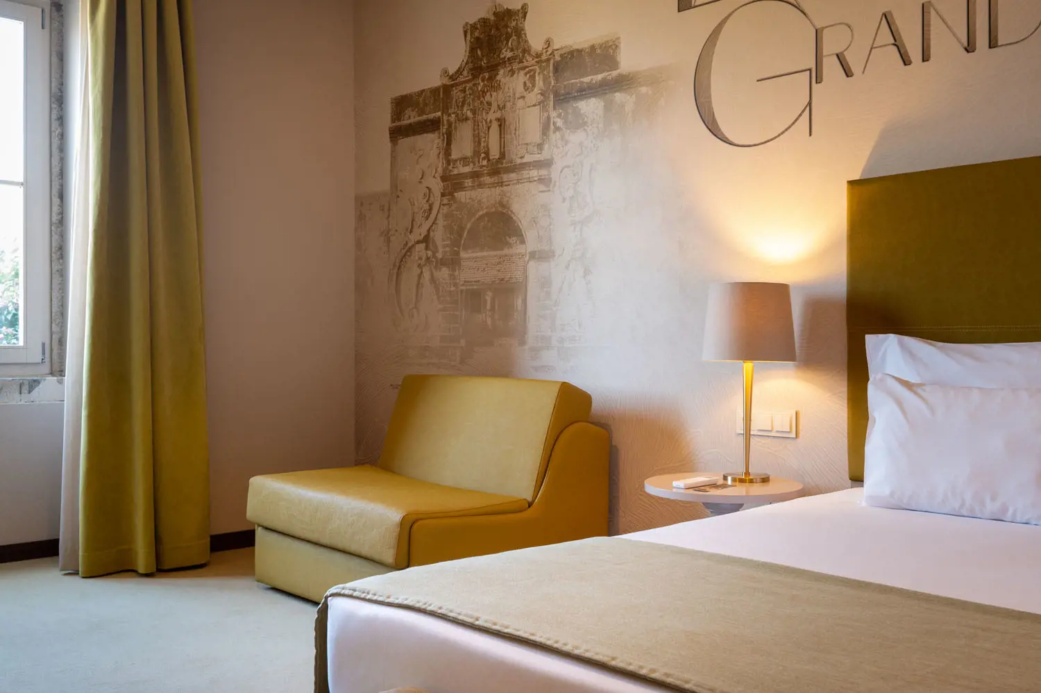 As acomodações estão distribuídas por 79 quartos, apresentando tipologias variadas que vão desde quartos standard até suítes mais amplas, cada uma composta por mobiliário refinado, climatização, TV de ecrã plano, cofre, minibar e casa de banho privativa. Alguns quartos contemplam zonas de estar separadas ou vistas panorâmicas sobre a cidade‑fortaleza, garantindo diferentes níveis de conforto e privacidade.