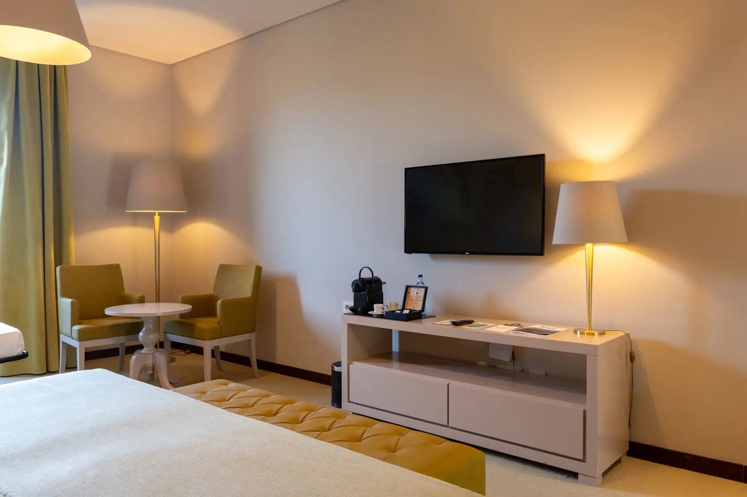 O quarto dispõe de telefone, Wi-Fi gratuito, ar-condicionado, televisão LED com canais por cabo, mini-bar e cofre. A casa de banho privativa inclui telefone, secador de cabelo, espelho de maquilhagem* e produtos de higiene pessoal gratuitos. Também conta com serviço de quarto 24 horas, fechadura eletrônica de segurança, sala de estar, roupão, chinelos, chaleira* e máquina de café Nespresso*.