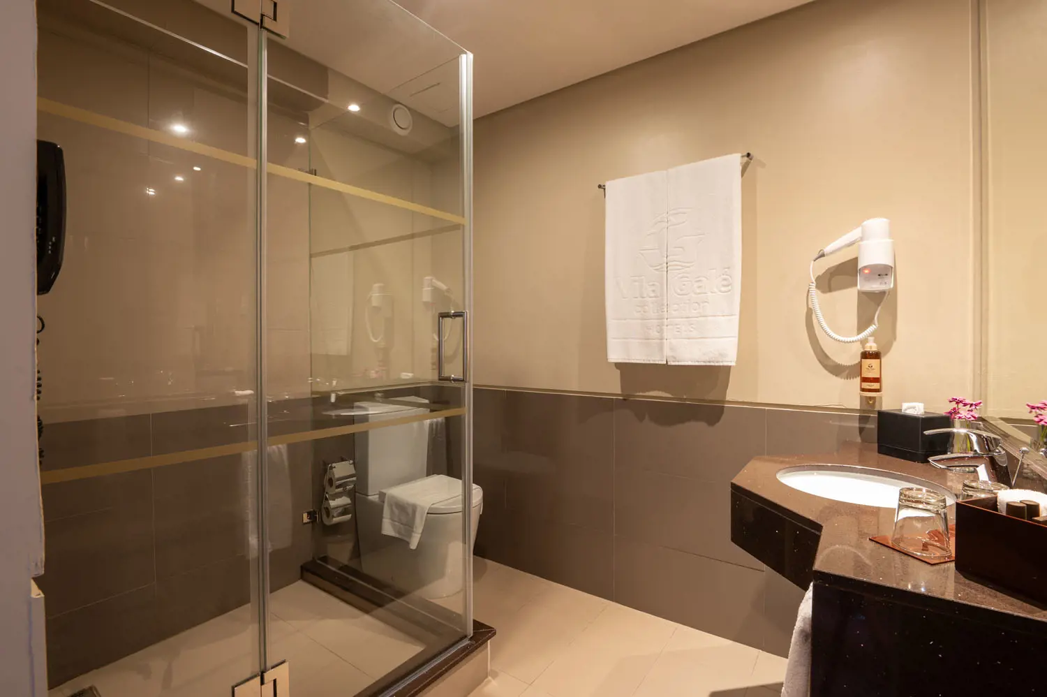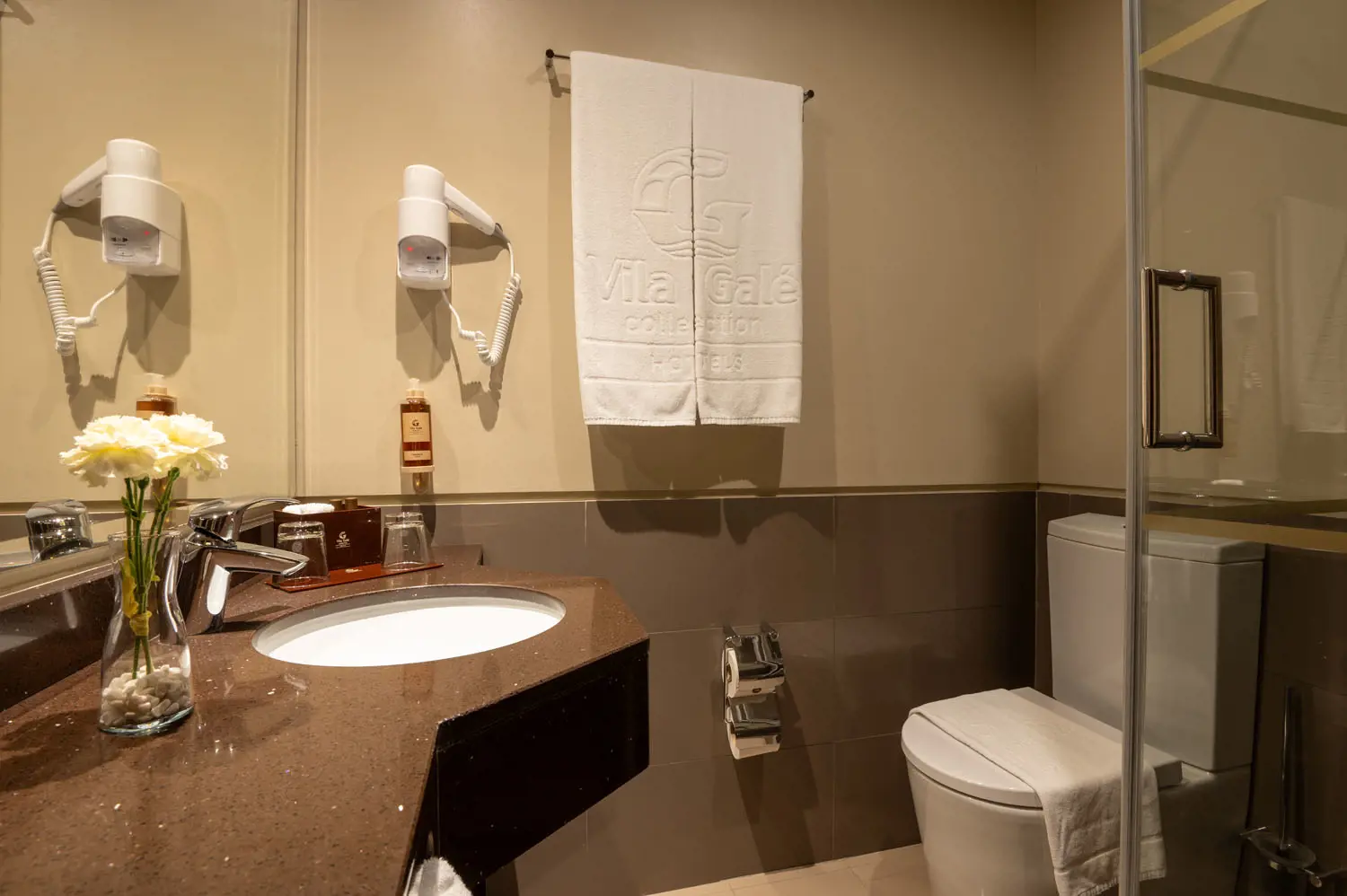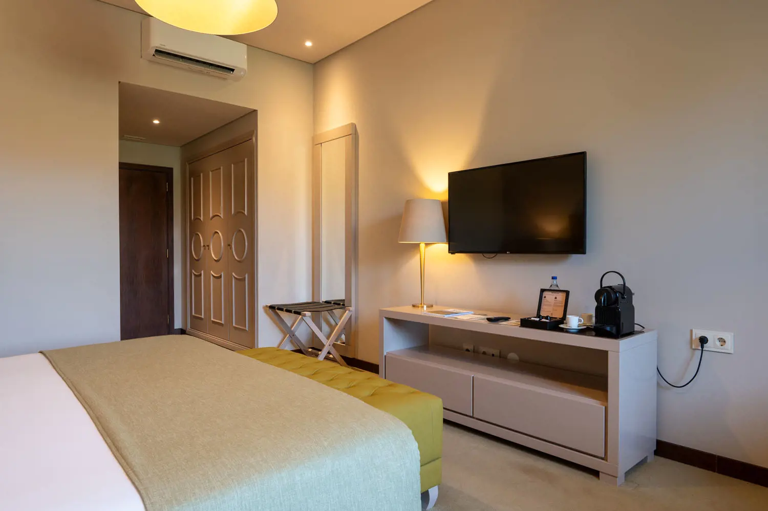 O quarto dispõe de telefone, Wi-Fi gratuito, ar-condicionado, televisão LCD com canais por cabo, mini-bar e cofre. A casa de banho privativa inclui telefone, secador de cabelo, espelho de maquiagem* e amenities gratuitos. Também conta com fechadura eletrônica de segurança, serviço de quarto 24 horas, roupão, chinelos, além de chaleira* e máquina de café Nespresso*.