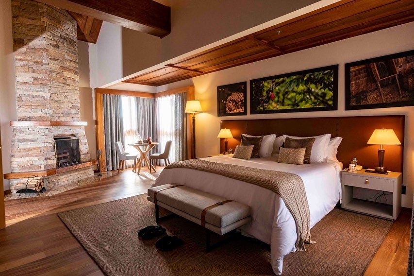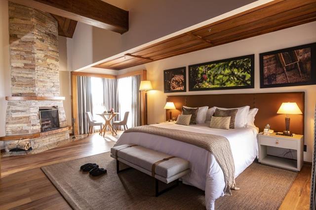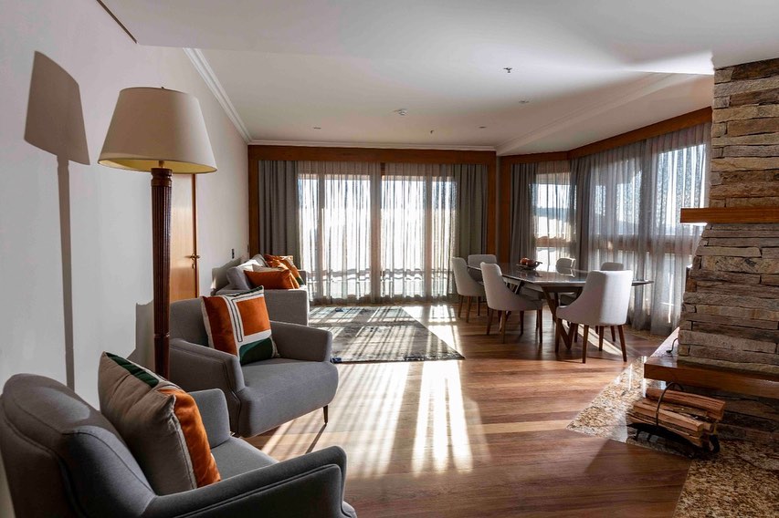 Com 135 m2 de área útil e vista panorâmica para as montanhas, as Suítes Presidenciais são elegantes e espaçosas. O Hall de entrada, dá acesso a um quarto confortável, ampla sala de estar com lareira, mesa de jantar e varanda, onde os hóspedes poderão relaxar tomando um delicioso vinho ou desfrutar de um agradável jantar em família! – Para 3ª pessoa com idade inferior a 10 anos, dormindo com os pais não terá custos extras. Para cada cama extra terá um acréscimo de 30% + taxas por dia.