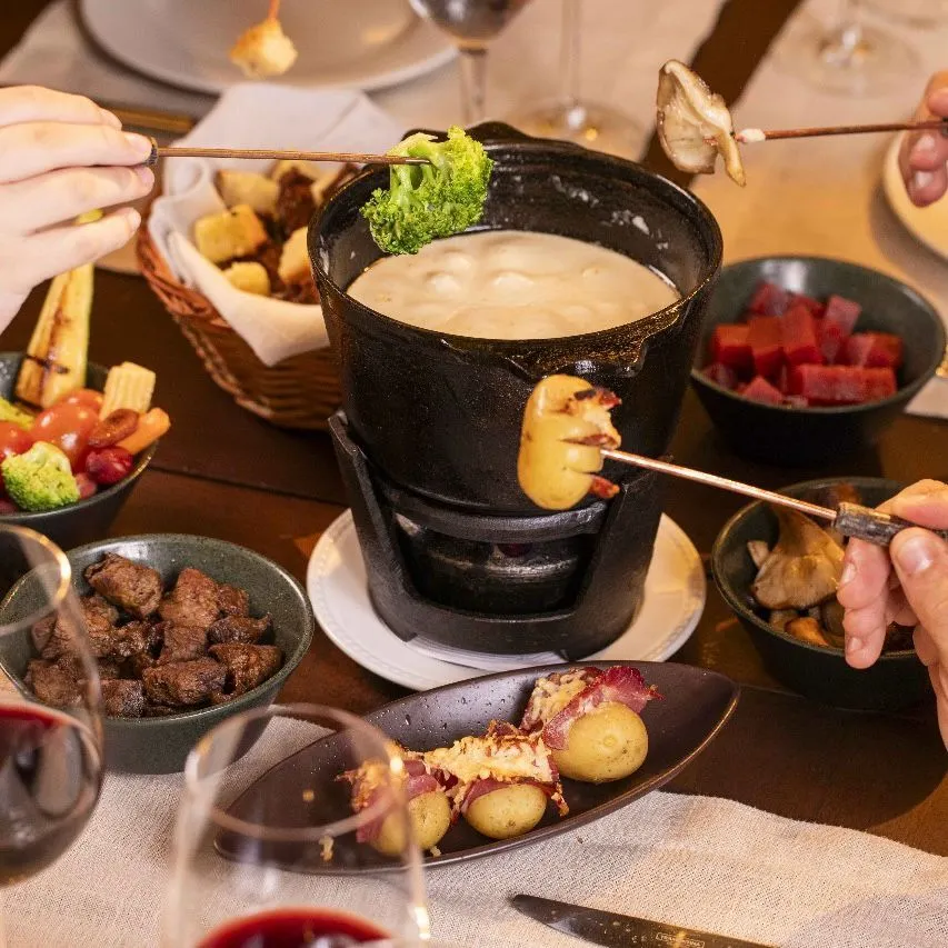 Para os dias mais frios, a estrela é o fondue, servido em versões salgadas e doces — com destaque para receitas que usam inteiramente ingredientes dos produtores locais.