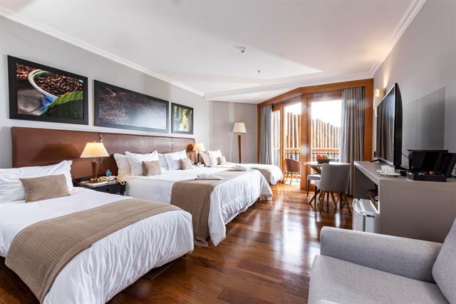 Com 43m² de puro conforto, decoração sofisticada, os apartamentos da categoria Superior Premium oferecem um ambiente espaçoso e aconchegante. As camas de solteiro unidas garantem conforto, espaço e versatilidade, proporcionando uma experiência de descanso tão agradável quanto uma cama de casal. A charmosa varanda convida você a relaxar e apreciar momentos inesquecíveis. Crianças de até 10 anos, hospedadas com os pais, são cortesia. Para cada cama extra, aplica-se um acréscimo de 30% + taxas por dia.