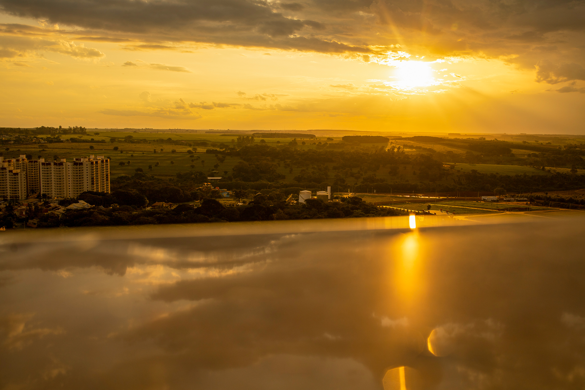 Desfrute de sabores únicos enquanto aprecia o pôr do sol na Área das piscinas.