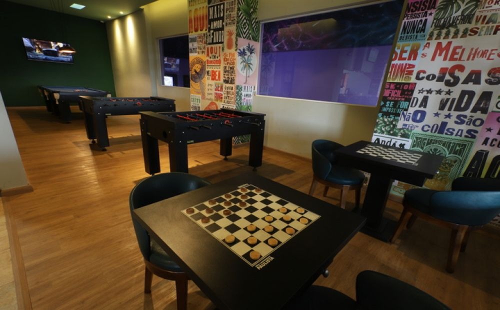 Para os adolescentes, o Hot Beach tem um espaço de diversão repleto de mesas, tabuleiros, jogos físicos e vídeo games, garantindo entretenimento para todos os momentos.