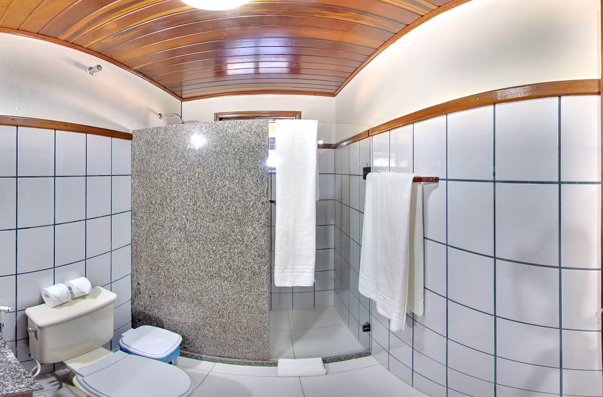 Apartamentos standard para famílias de até 4 pessoas, possui 1 cama king size 1,80m X 2,0m e 2 camas box de solteiro, ducha com aquecimento central, ar condicionado Split, TV a cabo 32″, frigobar, cofre, secador de cabelo, acesso à internet via Wi-Fi grátis, varanda com mesa, cadeiras e rede. Voltagem 110V.