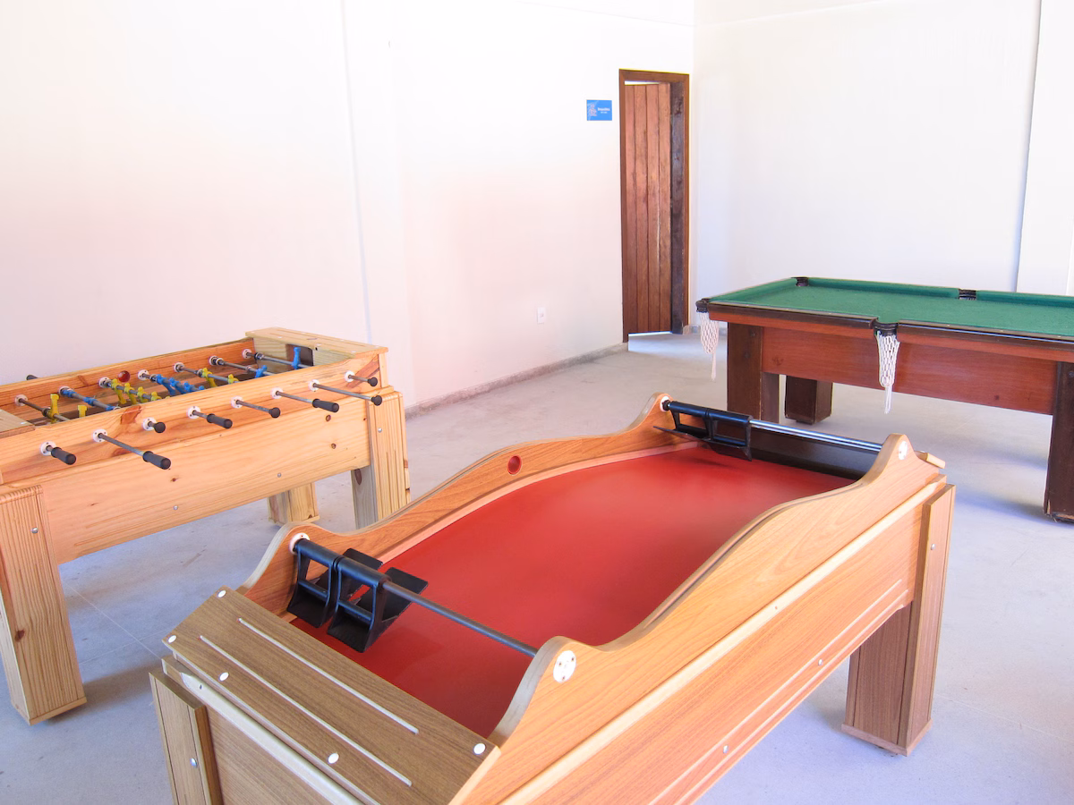 Apartamentos com 43,67m² contendo: Mesa de jantar com 04 bancos Sofá Cama TV 32″ Frigobar Cama de Casal Cofre TV 32″ Telefone Varanda Vista Mar Wi Fi Estacionamento Privativo