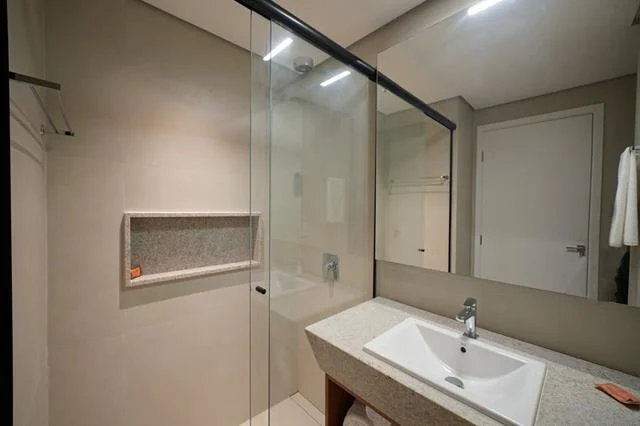 Apartamento de 68,82m² com ambiente de cozinha americana e sala integrados, sala com sofá cama, Smart TV 40” e ar condicionado, cozinha com mesa e quatro cadeiras, micro-ondas, frigobar e utensílios básicos, além de varanda com mesa e cadeiras. Apartamento com dois quartos, sendo um quarto suíte com cama queen e ar condicionado. E outro quarto com duas camas de solteiro e ar condicionado. Apartamento possui dois banheiros, sendo um na suíte e outro social, além de amenities e enxoval completo. Wi-fi gratuito no apartamento e áreas sociais. Acomodação com cama queen, sofá cama na sala, duas camas de solteiro, não há cama extra. O Porto Alto Resort é um empreendimento de multipropriedade, sendo assim, reservas com pernoite às quintas-feiras, poderá haver a necessidade de mudança de apartamento, conforme a disponibilidade da unidade inicialmente reservada. Caso essa troca seja necessária, nossa equipe de recepção informará no momento do check in e todo suporte será realizado para garantir conforto e bem-estar durante sua estadia.