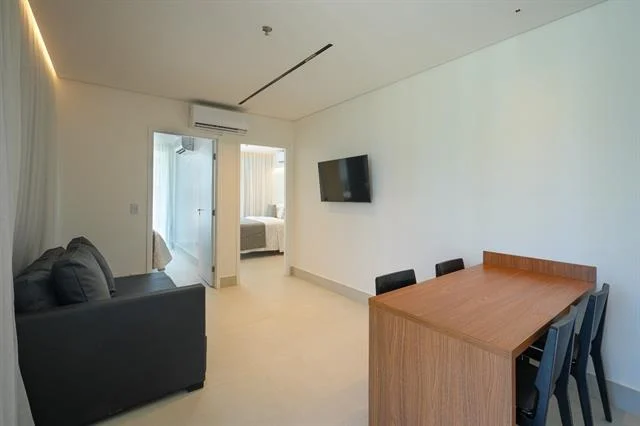 Apartamento de 62,82m² com ambiente de cozinha americana e sala integrados, sala com sofá cama, Smart TV 40” e ar condicionado, cozinha com mesa e quatro cadeiras, micro-ondas, frigobar e utensílios básicos, além de varanda com mesa e cadeiras. Apartamento com dois quartos, sendo um quarto suíte com cama queen e ar condicionado. E outro quarto com duas camas de solteiro e ar condicionado. Apartamento possui dois banheiros, sendo um na suíte e outro social, além de amenities e enxoval completo. Wi-fi gratuito no apartamento e áreas sociais. Acomodação com cama queen, sofá cama na sala, duas camas de solteiro, não há cama extra. O Porto Alto Resort é um empreendimento de multipropriedade, sendo assim, reservas com pernoite às quintas-feiras, poderá haver a necessidade de mudança de apartamento, conforme a disponibilidade da unidade inicialmente reservada. Caso essa troca seja necessária, nossa equipe de recepção informará no momento do check in e todo suporte será realizado para garantir conforto e bem-estar durante sua estadia.