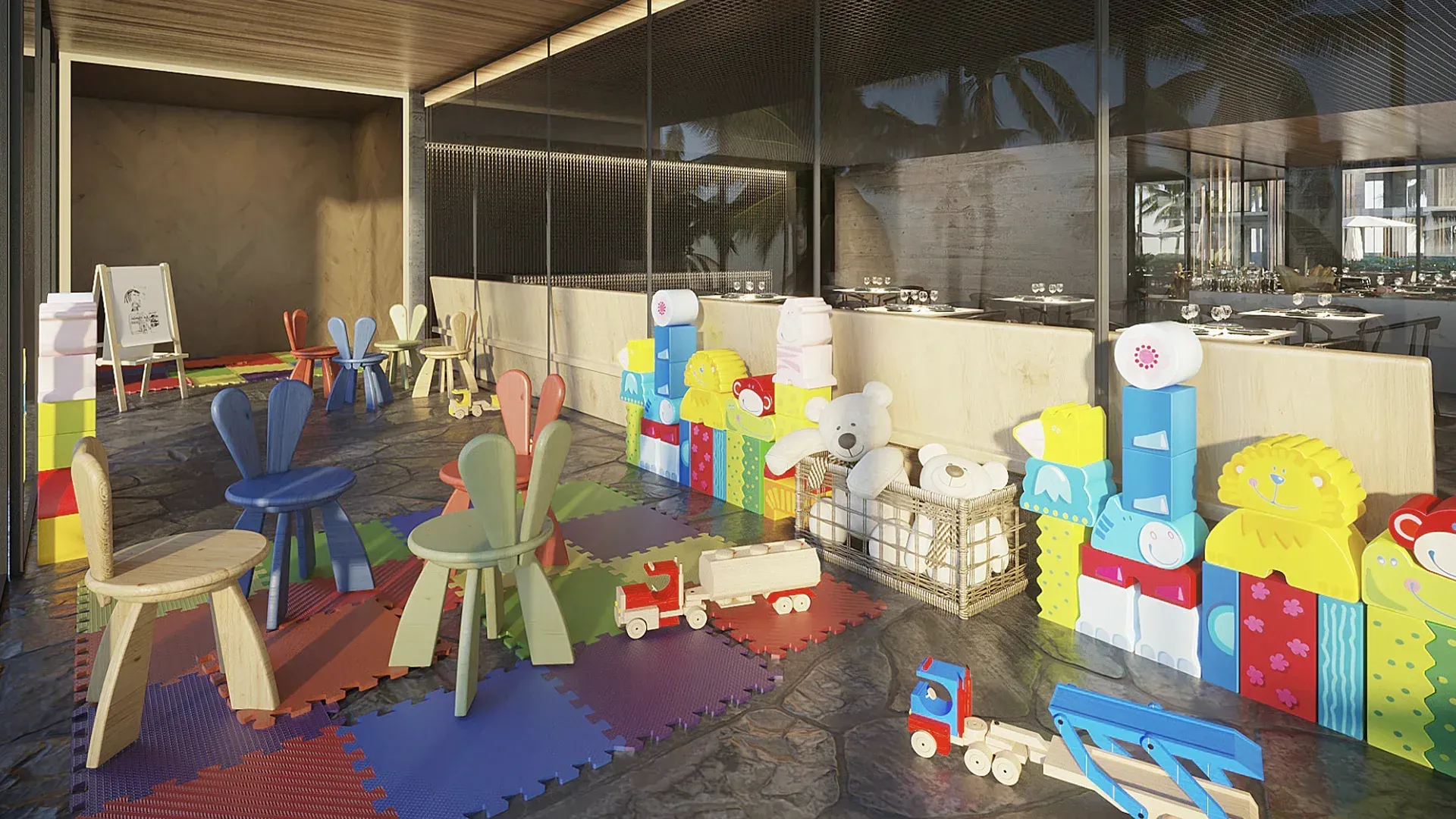 Os baixinhos aproveitarão um universo encantado de férias, com parque aquático infantil, brinquedoteca e playground.