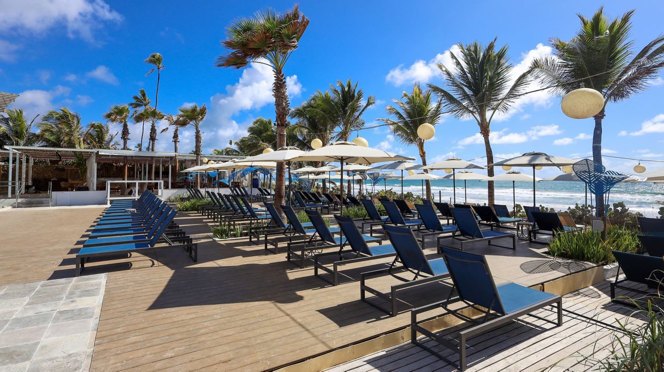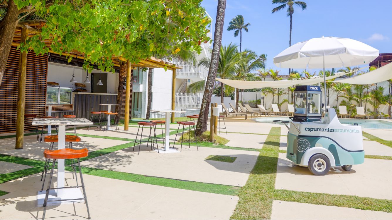 Rodeado por palmeiras, nosso bar à beira-mar é o local ideal para descontração e relaxamento. Desfrute de um cocktail refrescante ao sol enquanto aproveita a brisa e as vistas para um mar de tirar o fôlego.