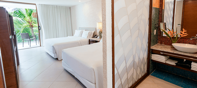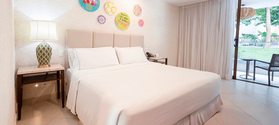Experimente o conforto e sofisticação em nossas acomodações, projetadas para proporcionar momentos inesquecíveis. Cada espaço conta com internet de alta velocidade e Wi-Fi gratuito, além das exclusivas camas Heavenly®, garantindo noites de sono revigorantes. Aproveite todos os benefícios do pacote all-inclusive e desfrute de uma estadia incomparável.
