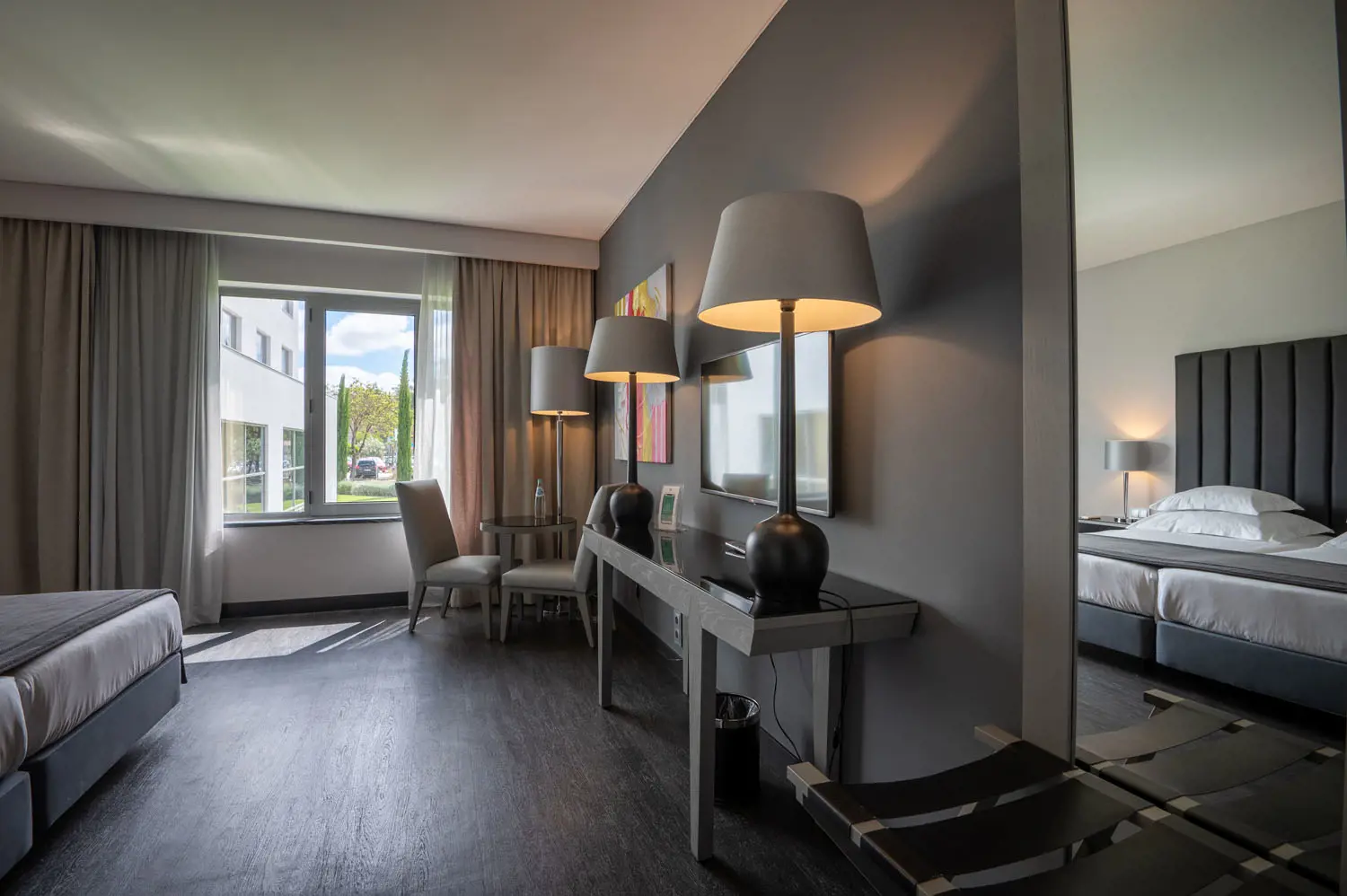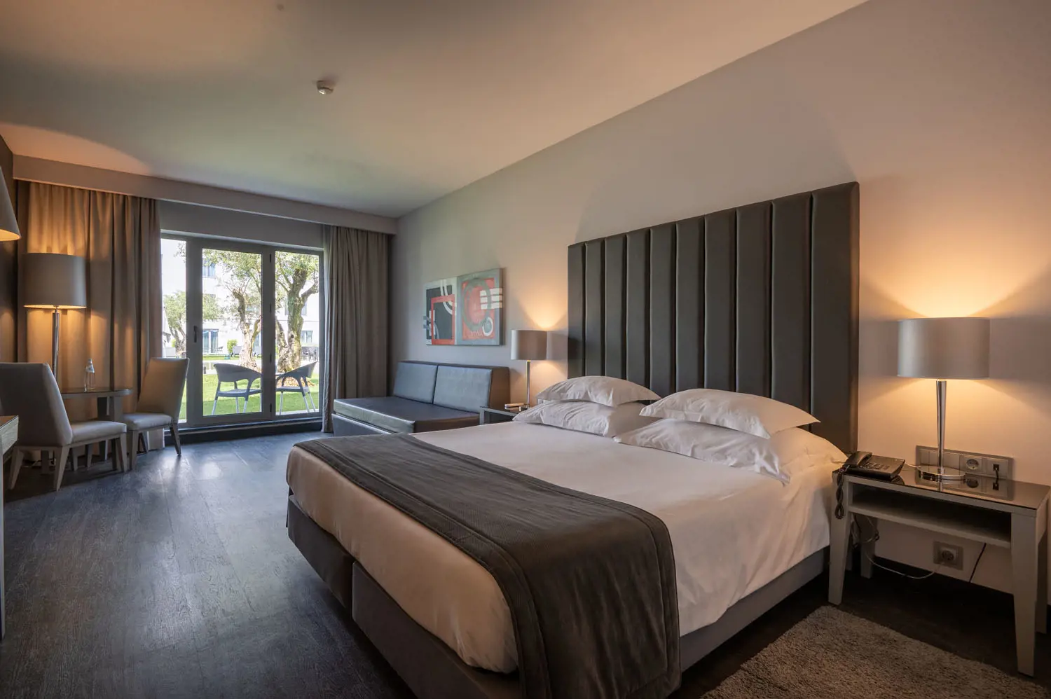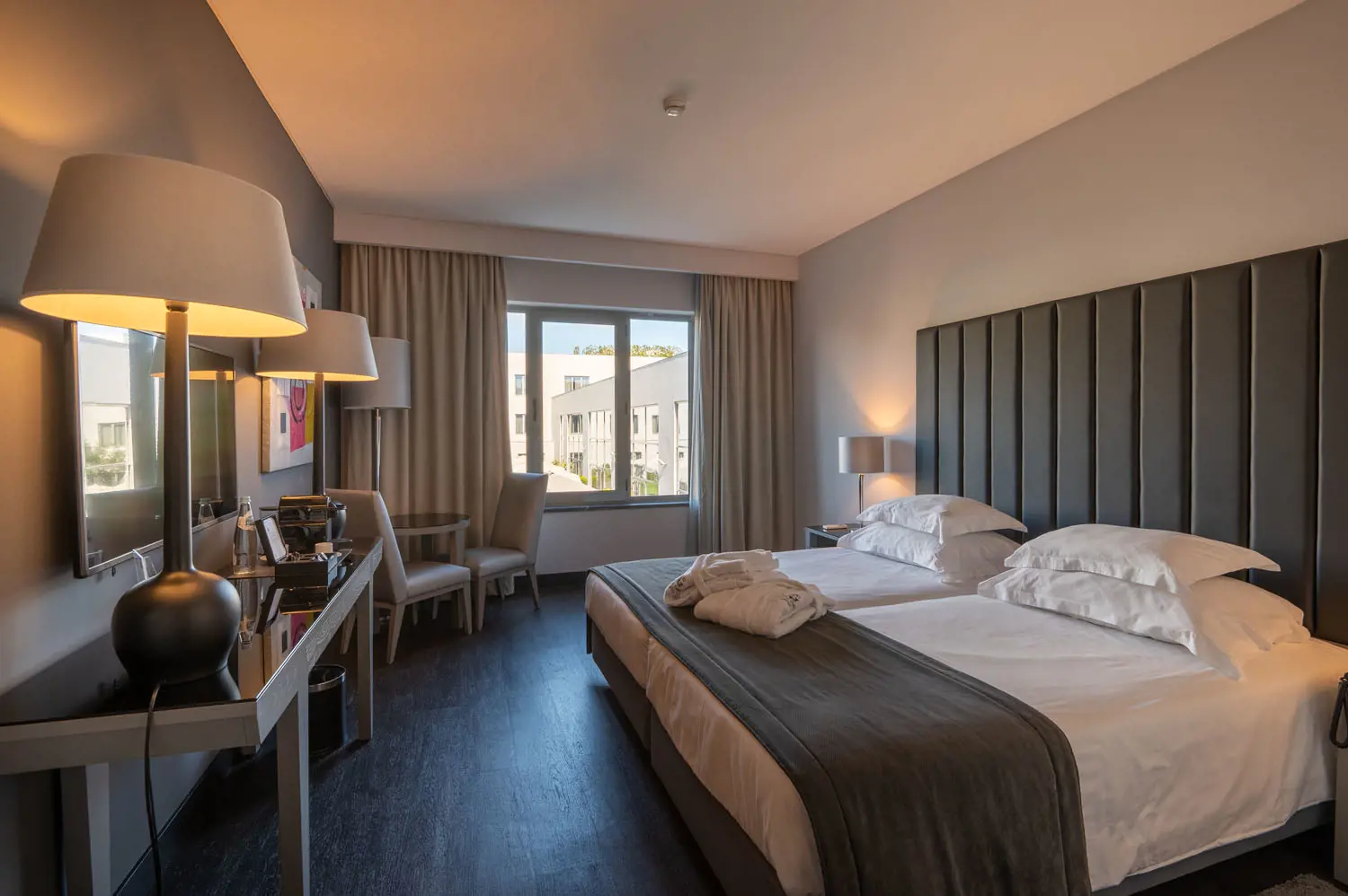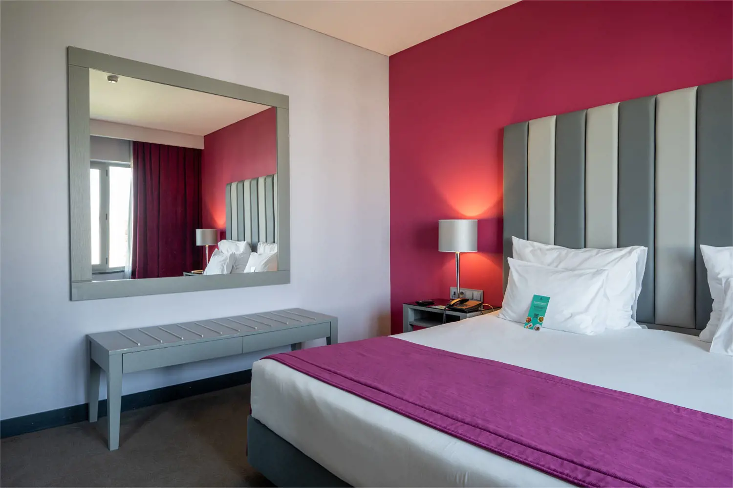 Os quartos do Vila Galé Évora contemplam várias categorias: quartos standard, quartos superiores com vista para a piscina, quartos familiares e suítes.