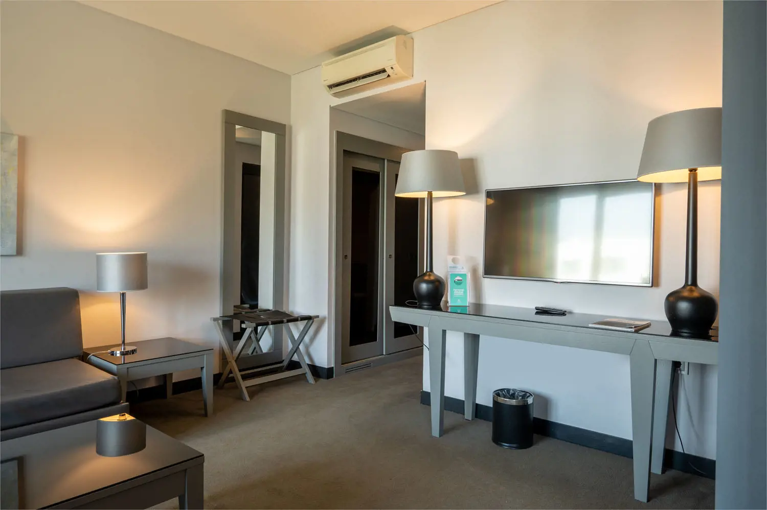 Cada unidade está equipada com ar‑condicionado, televisão LED, canal por cabo, mini‑bar, cofre, casa de banho privada, secador de cabelo, espelho de maquilhagem e produtos de higiene gratuitos.